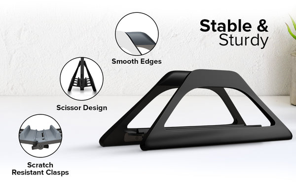 Our laptop vertical stand features an extra stable scissor clasp design for added stability. No more worrying about your laptop falling, even when the desk is bumped.