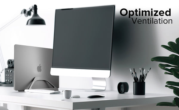The laptop stand vertical is designed to keep your laptop vertically and elevate it off the ground, allowing for improved heat dissipation.