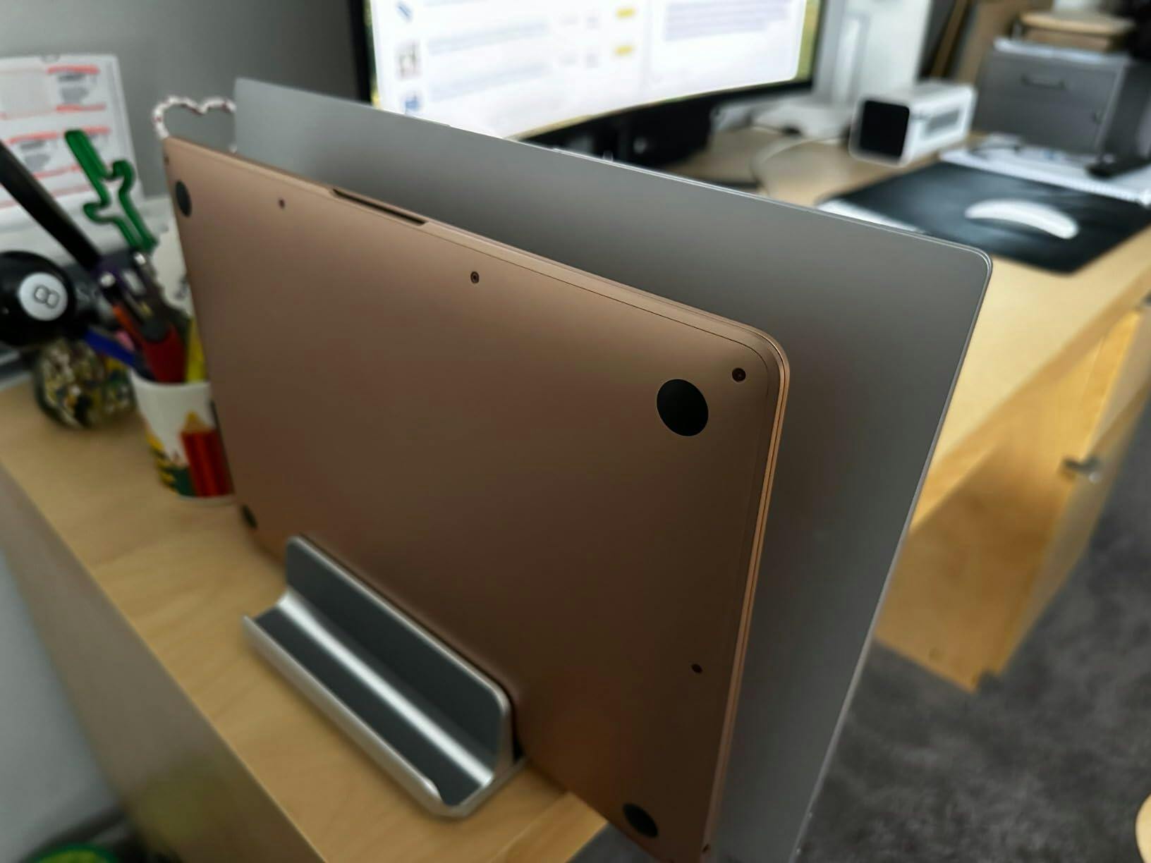 Get the full desktop experience. Connect an external monitor, keyboard, and mouse to your laptop, and dock your computer for maximum productivity. For a Mac stand, use closed-clamshell mode while using your MacBook holder stand for desk.